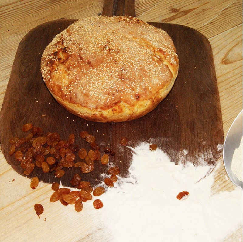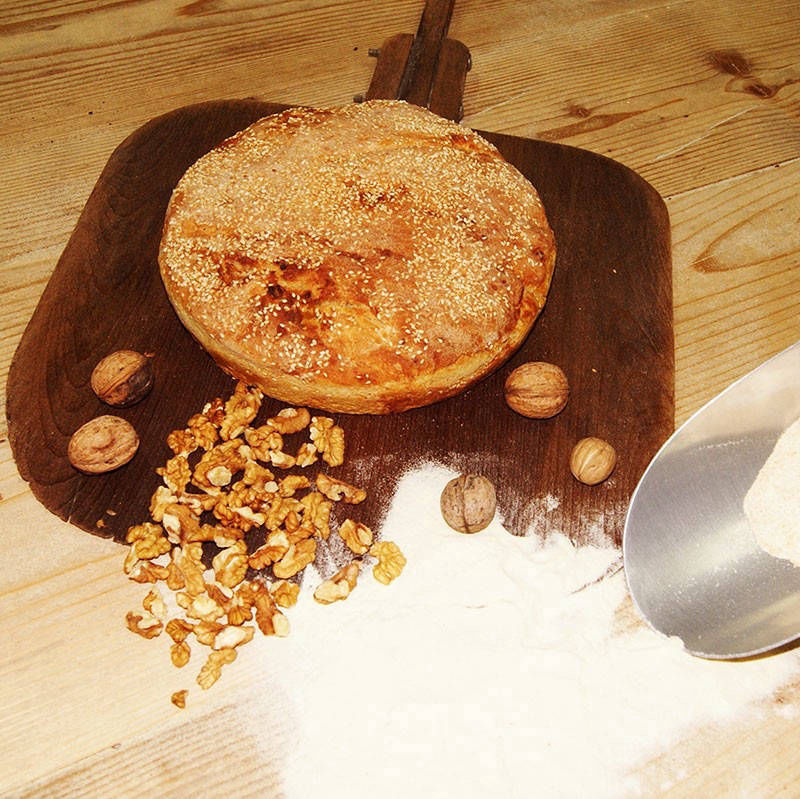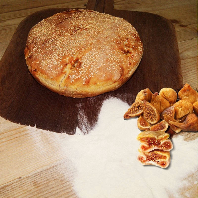 Ψωμί ζέας, πολύσπορο, καλαμποκόψωμο με σχινόκαρπο, με κάστανο, με καρύδι, με σύκα κτλ. Όλα με προζύμι και ψημένα σε ξυλόφουρνο.