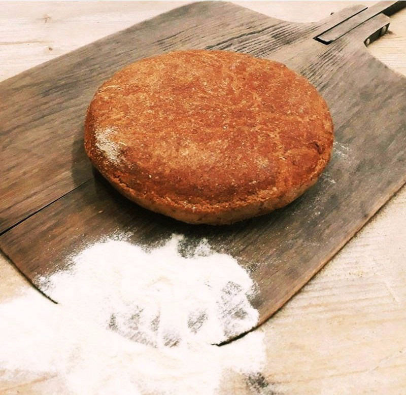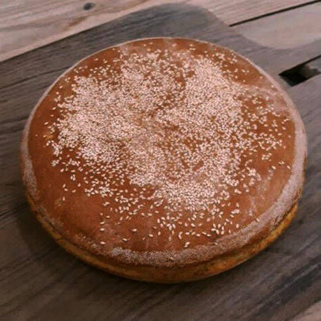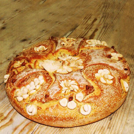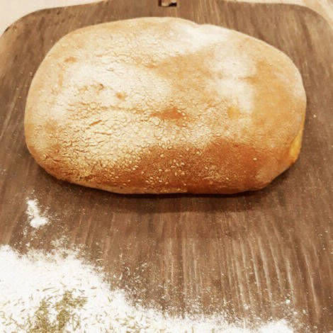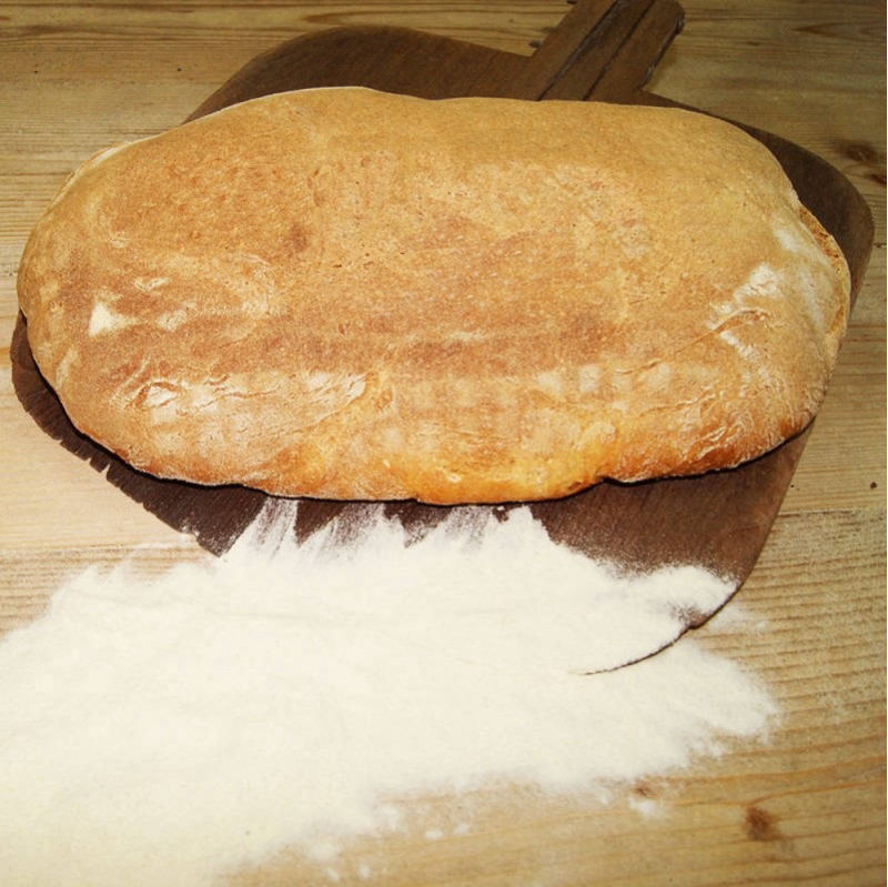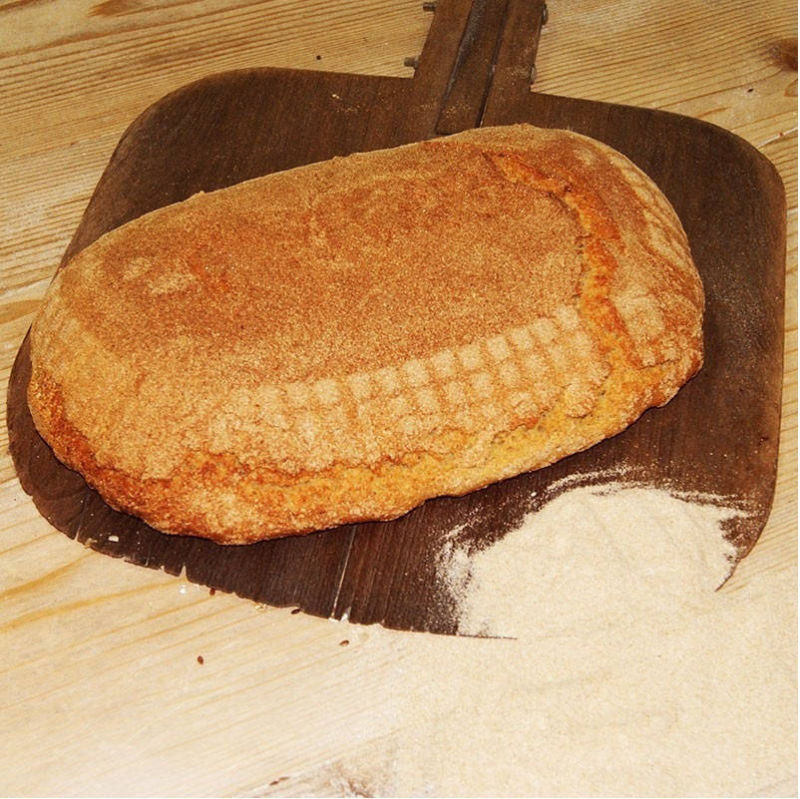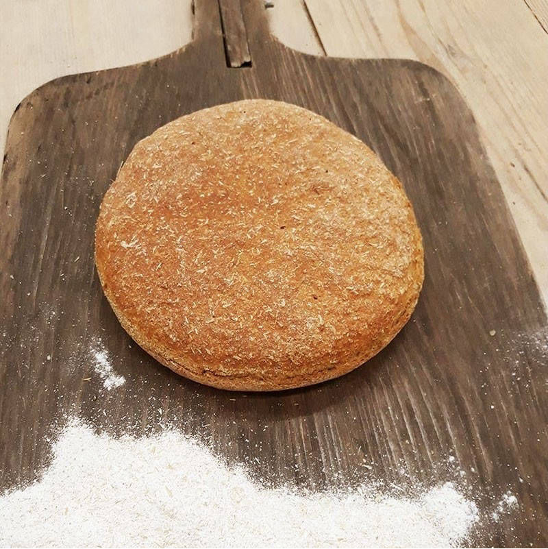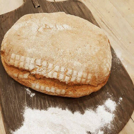 Ψωμί με προζύμι σταρένιο από σκληρό αλεύρι που δεν έχει υποστεί διαδικασία λεύκανσης ψημένο σε παραδοσιακό φούρνο με ξύλα και ζυμωμένο με αγνό άγριο θυμάρι.